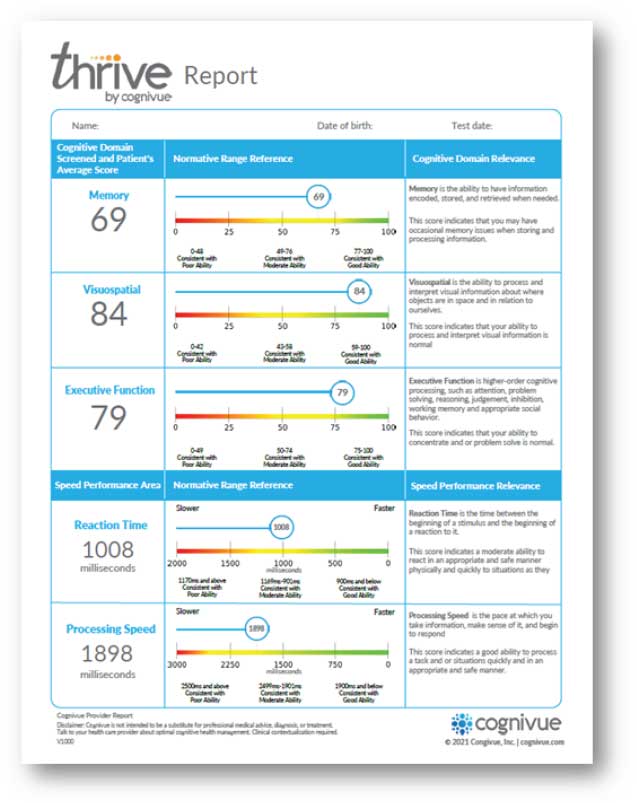 Cognivue® Thrive Outcomes Report